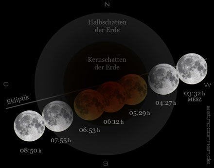 Totale Mondfinsternis - in Deutschland als partielle Finsternis in der Morgendämmerung sichtbar