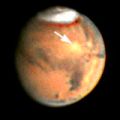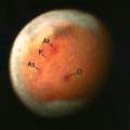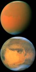 Im Jahr 2003 wurde die Entstehung und Entwicklung eines lokalen Staubsturms beoachtet. Die dabei angefertigte und in ihre drei Farbkanäle zerlegte Aufnahme zeigt deutlich, wie sich der atmosphärische Staub unter Zuhilfenahme verschiedener Filter kontrastreich abheben lässt.