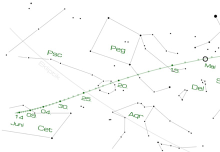 bis Monatsende das Sternbild Fische und strebte in südöstliche
