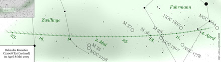 Im Winter 2008/2009 entwickelte sich die Helligkeit des Kometen Cardinal allerdings unterdurchschnittlich, so dass es äußerst unsicher ist, ob der Schweifstern seine prognostizierte Helligkeit erreichen wird.