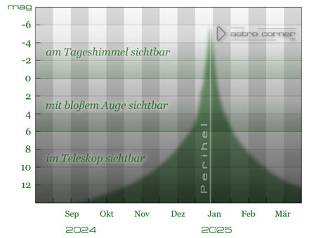 Im Perihel präsentierte sich der Komet etwas schwächer als erwartet mit einer Helligkeit von etwa −3,8 mag. Einen Tag nach der Passage seines sonnennahen Bahnpunkts kam es zu einem nochmaligen kurzzeitigen Anstieg seiner scheinbaren Helligkeit auf etwa diesen Wert.