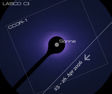 Am 24. und 25. April 2026 wird der Komet auch auf den Aufnahmen des Koronographen CCOR-1 sichtbar sein.