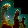 Obwohl das Erscheinungsbild stark an ein im Jahr 1995 vom Hubble Space Telescope (HST) aufgenommenes populäres Bild erinnert, sind die hier abgebildeten Strukturen allerdings circa 10 Mal größer als die von Hubble entdeckten Säulen im Adler-Nebel. Die Aufnahme des HST bildete einen kleineren Himmelsbereich ab und bot eine detaillierte Auflösung bzw. eine höhere Vergrößerung.