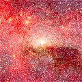 | Mit dem Weltraumteleskop Spitzer wurde ein faszinierendes Bild des zentralen Bereichs unserer Milchstraße angefertigt, das erstmals erstaunliche Details dieses eigentlich durch Dunkelwolken verhüllten Gebiets aufdeckt. Es ist der bislang tiefste und schärfste ausgedehnte Blick in das Herz unserer Galaxis. |