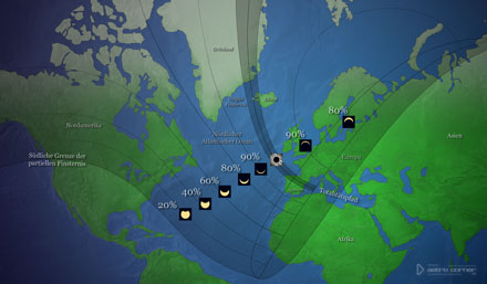 Spaniens. Die zentrale Zone dieser Finsternis erstreckt sich über weite Teile der nördlichen Hälfte der