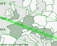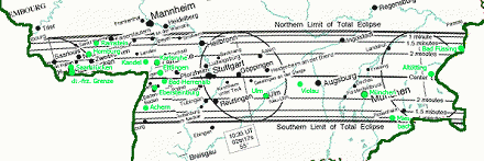 maximal 99%ige partielle Finsternis. Die weiter östlich liegenden