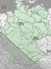 aus beobachtbar war. Diese Zone reichte vom nördlichsten Zipfel