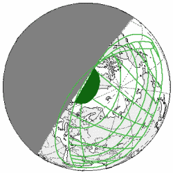 den Nordpol der Erde hinweg, der zentrale Halbschattenbereich, von