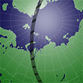 | Globaler Verlauf der Kernschattenzone der Totalen Sonnenfinsternis vom 1. August 2008 |