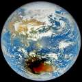 Aufnahmen des gesamten Erdglobus' mit dem Halb- und Kernschatten des Mondes während der Sonnenfinsternis vom 20. April 2023 von dem japanischen Mondlander Hakuto-R und dem Deep Space Climate Observatory (DSCOVR)