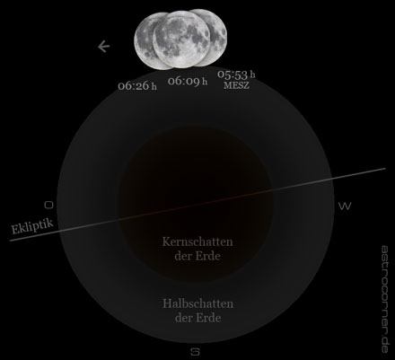 Da der Halbschatten der Erde nach außen hin keine sichtbare Grenze besitzt, trat dabei praktisch so gut wie kein sichtbarer Verfinsterungs-Effekt auf. Es handelte sich bei dieser Eklipse also viel eher um eine theoretische Finsternis.