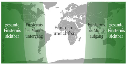 Im deutschsprachigen Raum konnte diese Finsternis nicht beobachtet werden, da sie stattfand, als sich der Mond noch unterhalb der Horizontlinie befand.