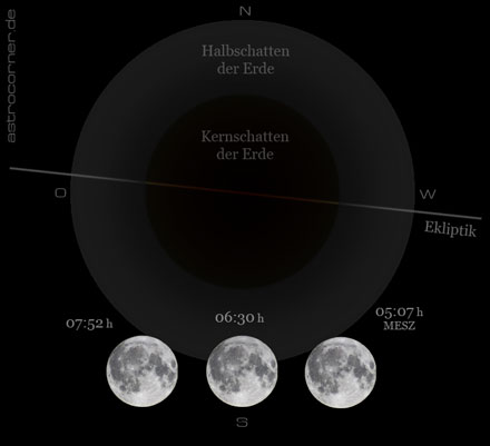 Unser kosmischer Begleiter benötigte danach noch 1 Stunde und 22 Minuten, um den Halbschatten der Erde wieder vollständig zu verlassen.