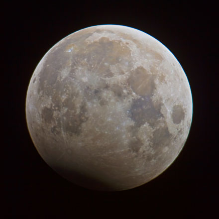 Schließlich wurde noch einmal eine Halbschattenphase durchlaufen. Zum Ende der Finsternis um 00:26 h stand der Mond mehr als 50 Grad hoch über dem SSO-Horizont.