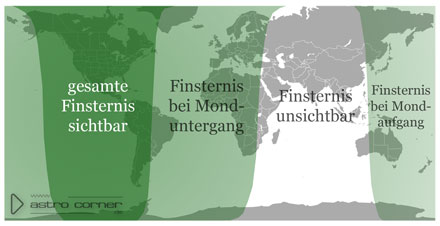 Im deutschsprachigen Raum ging der Mond bereits kurz vor Beginn der Totalität unter.