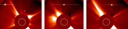 | Venus kurz vor ihrer unteren Konjunktion im Januar 2006 - der Planet wandert nördlich an der Sonne vorbei |