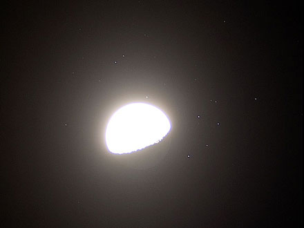 Der abnehmende Mond war an diesem Tag zu 68% beleuchtet. Die bedeckten Sterne verschwanden somit am hellen Mondrand und tauchten hinter der dunklen Seite wieder auf.