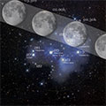 In der Nacht vom 27. zum 28. Oktober überstreift der noch fast volle Mond die Plejaden. Im deutschsprachigen Raum kann das Ereignis in seiner vollen Länge beobachtet werden. Zu Beginn des Ereignisses steht der Mond über 50 Grad hoch im Südwesten.
