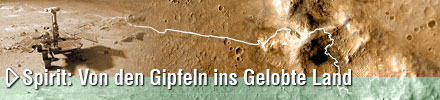 Der Mars Exploration Rover A (Spirit) erkundet die Oberfläche unseres roten Nachbarplaneten seit Januar 2004. Auf dem mehr als 7 Kilometer langen Weg, den der Rover seither durch die Gusev-Ebene zurückgelegt hat, erforschte er zahlreiche vulkanische Gesteinsbrocken, besuchte mehrere Einschlagskrater, erklomm die Gipfel der Columbia Berge, durchquerte Sanddünen und erforschte verschiedene Gesteine. Von seinem 90 Meter hohen Panorama-Standpunkt aus konnte Spirit zahlreiche Mini-Tornados beobachten.