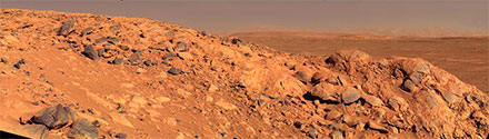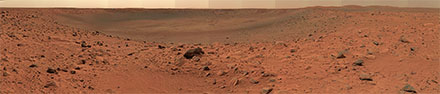 | Panorama-Blick von West Spur über den Gusev-Krater |