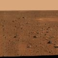 Das erste von Spirits Haupt-Kamerasystem aufgenommene 360°-Panorama lieferte eine spektakuläre Sicht über die mit Felsfragmenten und rotem Marssand übersähte Oberfläche des Gusev-Kraters.