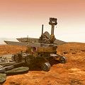 | Künstlerische Darstellung von Spirit auf der Marsoberfläche |