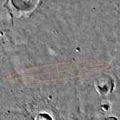 Meridiani Planum, ein Gebiet auf der gegenüber liegenden Seite des Planeten, in dem großflächige Ablagerungen von so genanntem