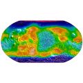| Auf der Suche nach Wasser auf der Marsoberfläche wurde aus Daten der Sonde Mars Odyssey eine Karte erstellt, die Rückschlüsse auf Wassereis-Vorkommen im Marsboden ziehen lässt. Mars Odyssey schloss damit seine Primärmission ab und erhielt eine Verlängerung bis 2006. |